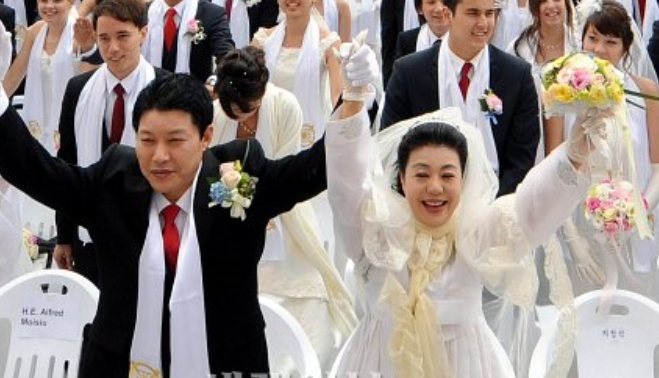 그것이 믿고 왔다바보 만난 한남은 그냥그냥 여자랑 결혼. 이 결혼식에 참석한 신도 600여 명이 각각 한 손에 총을 들고 등장했기 때문이다. 순결을 중요하게 여기는 참가정 운동을 벌여 세계 곳곳에서 합동결혼식을 열었다.