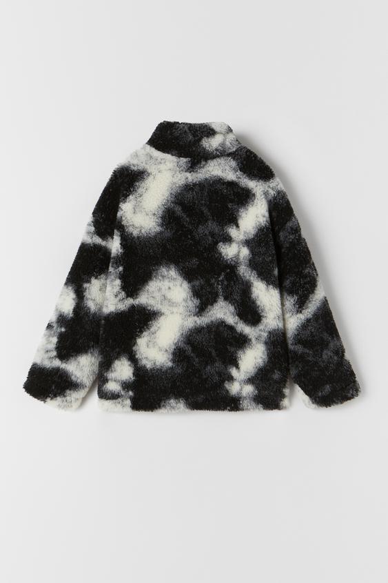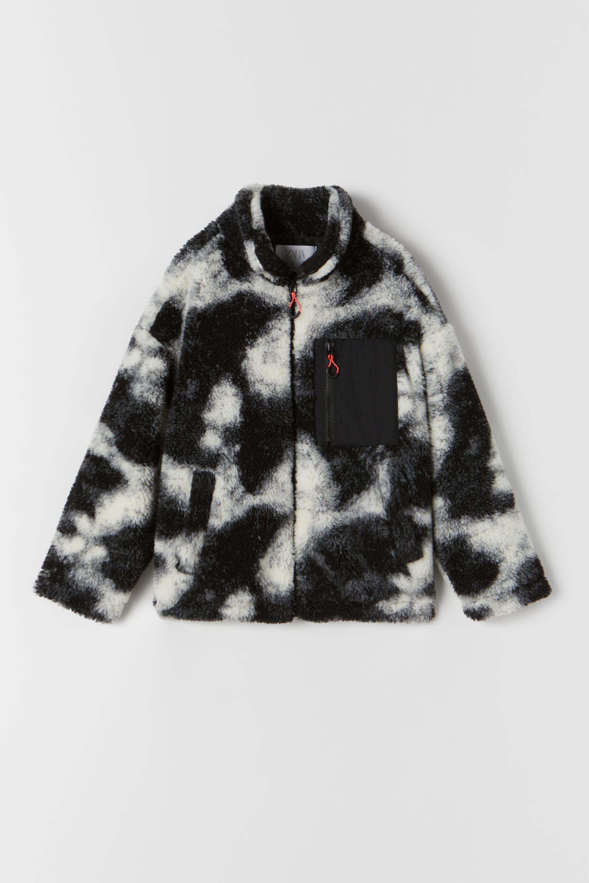 Tie Dye Faux Shearling Jacket Black Zara Turkey