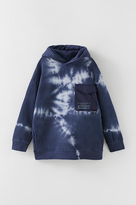 Contrast Sporty Tie Dye Hoodie Blue Zara New Zealand